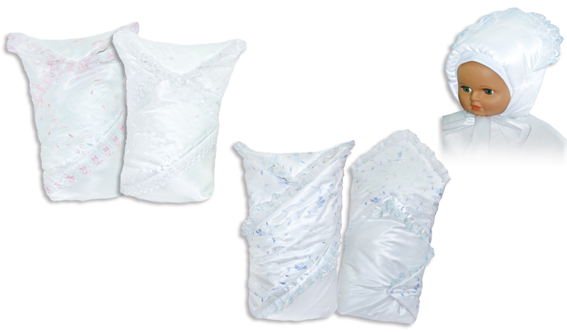 2.) 11-502/300 распродажа Одеяло с шапочкой Набор; 1.Одеяло креп сатин, органза с вышивкой в центре вставка квадрат 65*65.отделка шитьё, атласная лента подклад бязь, утеплитель холлофайбер волюметрик 300 гр, размер 118*118 модель М-501 2. Шапочка атласная, отделка шитьё, атласная лента размер 40-42 модель М-103. 30% 1 шт 725,00 (распр - 507,50)