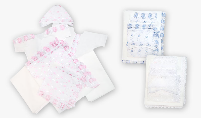 2.) 10-701/1Н Набор для выписки Набор 7-ми предметный; бязь и фланель отбеленные: отделка шитьё и вышитая ткань, 1. пододеяльник размер 147*112 модель М-229/1 2. пелёнка-уголок размер 80*80 модель М-100/1 3. пеленка бязь размер 80*110, модель М-05, 4. пелёнка фланелевая размер 75*110, модель М-06, 5. чепчик на подкладе размер 40 модель М-86/1 или-87/1, 6. распашонка бязь размер 62-40 модель М-34, 7. распашонка фланелевая размер 62-40 модель М-25 1 шт 505,00