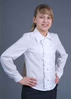 Классическая блузка с рюшами. Хорошо комбинируется как с юбками, так и с брюками. Удачно сочетается с жилетами темных тонов.