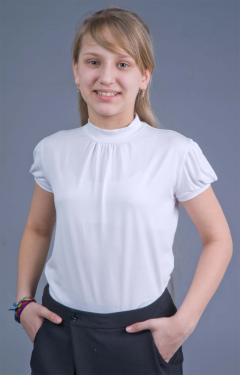 Водолазка с коротким рукавом и сборочкой около ворота.