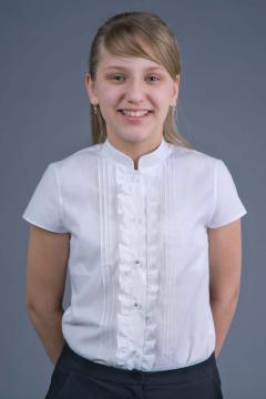 Классический вариант блузки, украшенный спереди рюшами.
