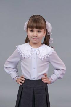 Белая блузка с вышивкой на рукавах и большом воротнике.