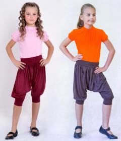 Трикотажные брючки оригинальной формы. Легкое и приятное изделие девочки по достоинству оценят.