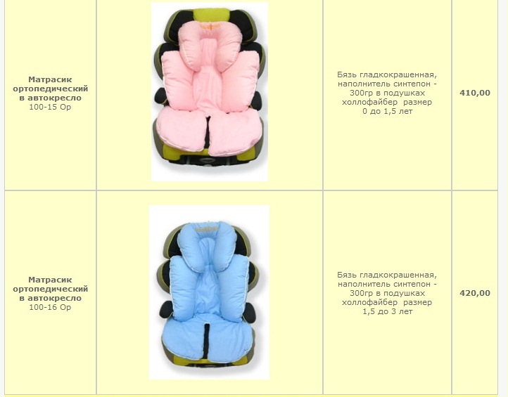матрасик в автокресло голубой от 0 до 1,5